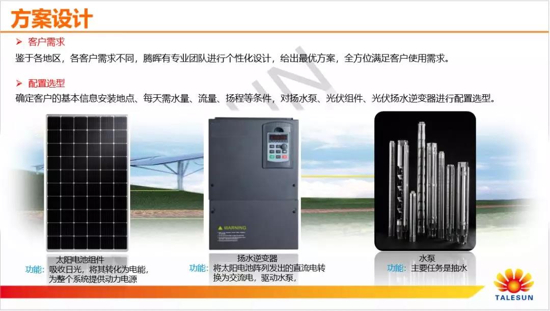 近几年,随着光伏产业的迅速发展,成本逐年下跌,尤其在今年政策调整下,价格已趋于平价上网,光伏产品将成为人们生活中常见的日常品。其中,光伏扬水系统是光伏产品与扬水相结合,创新应用到生活用水,农业灌溉、生态恢复、草原畜牧等需求中,光伏扬水系统作为光伏领域的拓展应用,不仅可以避免电网基础设施建设的大量资金投入,而且解决了农业生产、生活等缺电缺水难题。
