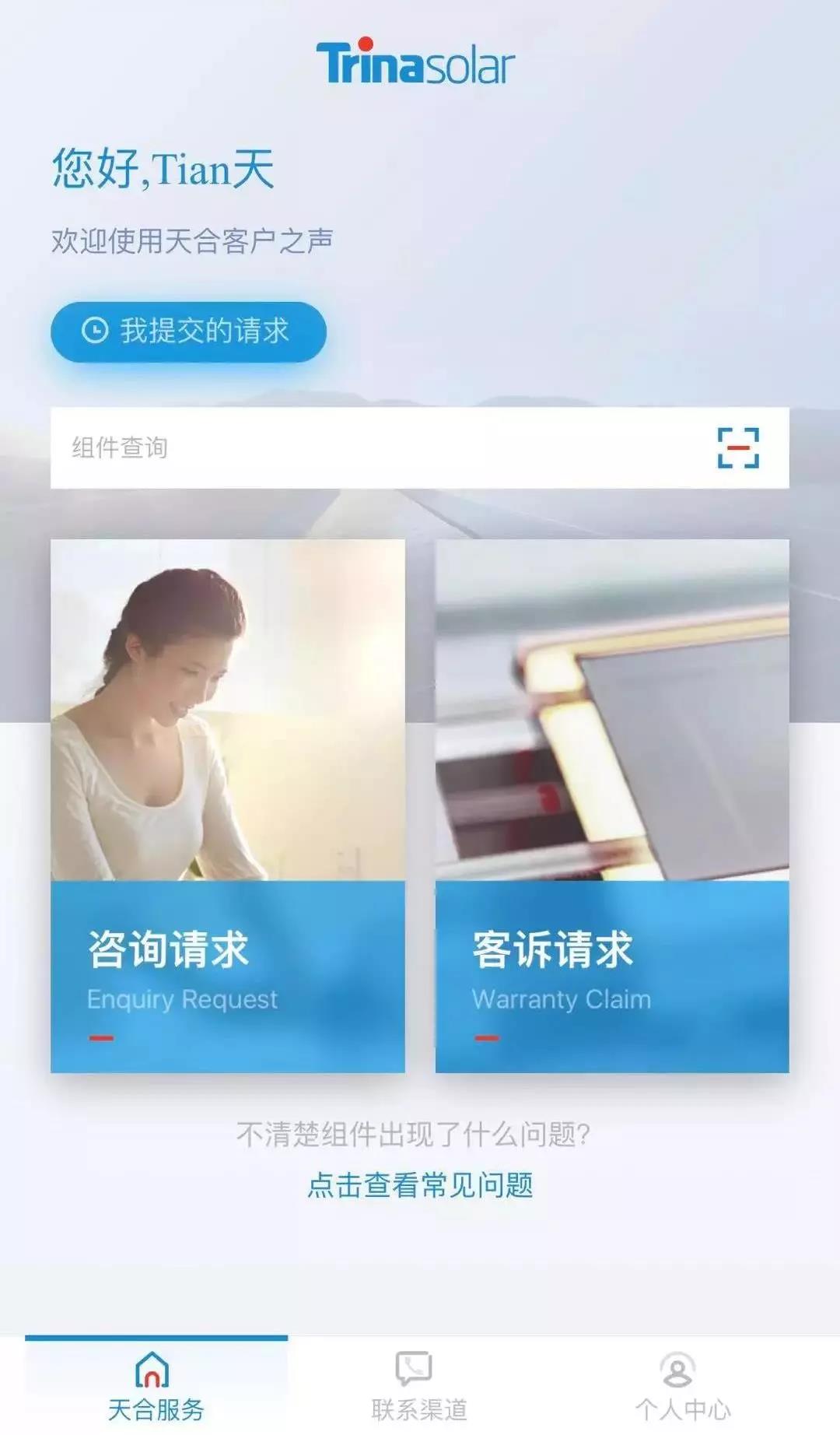 5月,天合光能新版“客户之声”APP上线。客户通过新版APP,可了解天合产品的更多信息,并与客服取得联系。