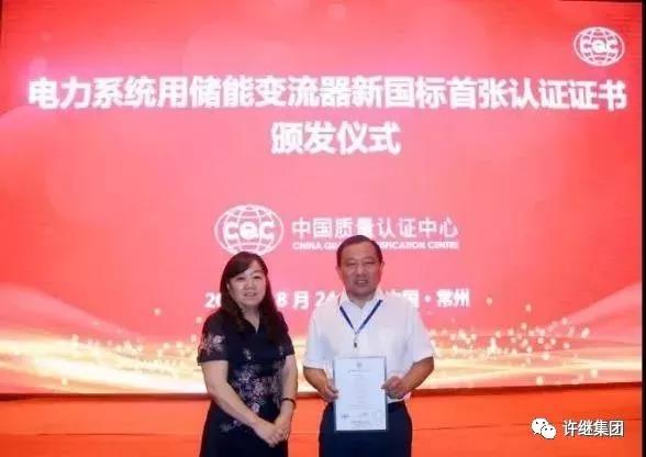 许继集团为国内首个取得CQC储能变流器PCS认证证书的厂家