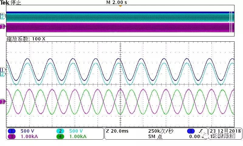 现场4台PCS直接并联运行的电压电流波形