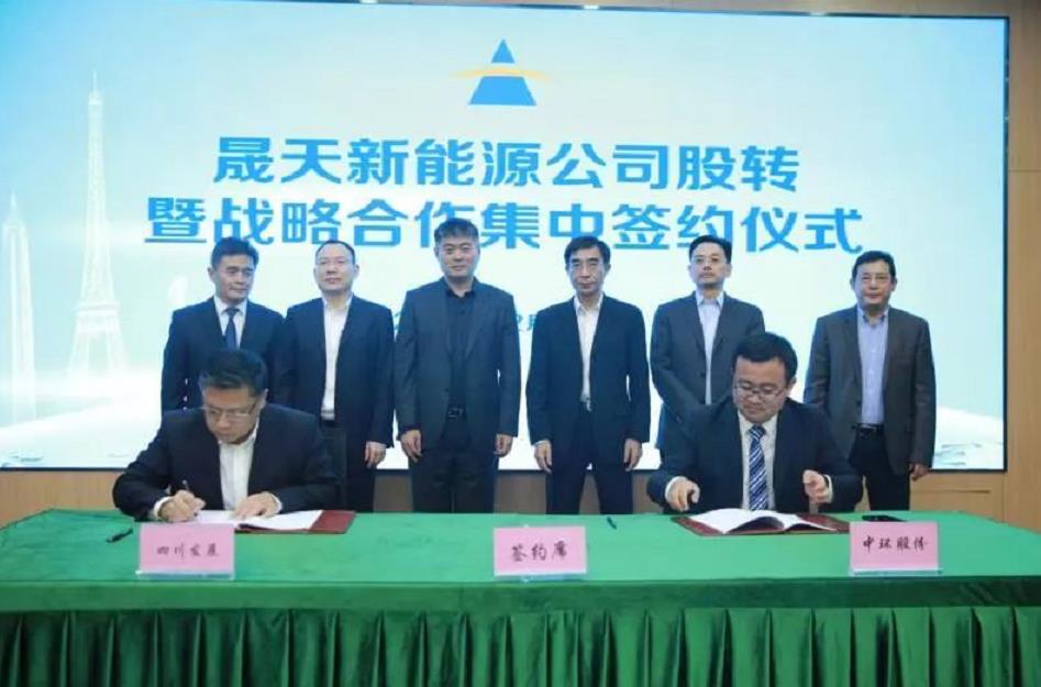 2018年12月27日下午,晟天新能源股转暨战略合作集中签约仪式在成都举行,中环股份与四川发展签署战略合作协议。四川发展(控股)有限责任公司总经理李文清,天津中环电子信息集团有限公司总经理、天津中环半导体股份有限公司董事长沈浩平,天津津联投资控股有限公司总经理王志勇,国网四川省电力公司副总经理谭志红,乐山电力股份有限公司董事长廖政权,SUNPOWER 中国公司总经理曹承刚等出席此次签约仪式。