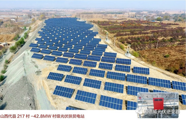 在“十三五”第一批光伏扶贫项目名单中,代县建档立卡贫困村236个,帮扶户数6483个,计划建设光伏电站数量217座,建设规模达42.8MW。项目全部采用固德威GW50K-MT智能光伏逆变器,该款逆变器不仅支持1.3倍直流侧超配,而且支持交流侧1.1倍长期过载输出,拥有全方位的智能监控及故障排查功能等保护措施,以及IP65高防水防尘等级,能充分适应农村电网条件较差的项目。