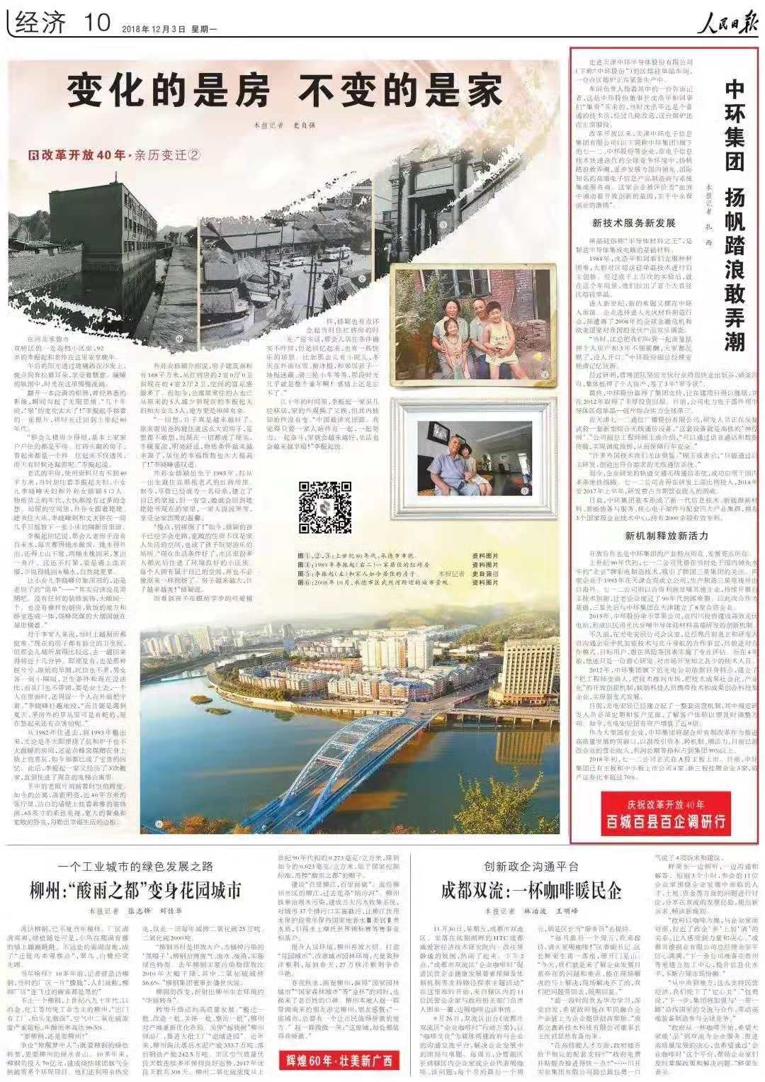 继10月9日登上中央广播电视总台后,中环集团又重磅亮相《人民日报》。今日出版的《人民日报》10版,刊发《中环集团 扬帆踏浪敢弄潮(庆祝改革开放40年·百城百县百企调研行)》一文,报道中环集团改革开放40年来取得的主要成绩和先进经验。