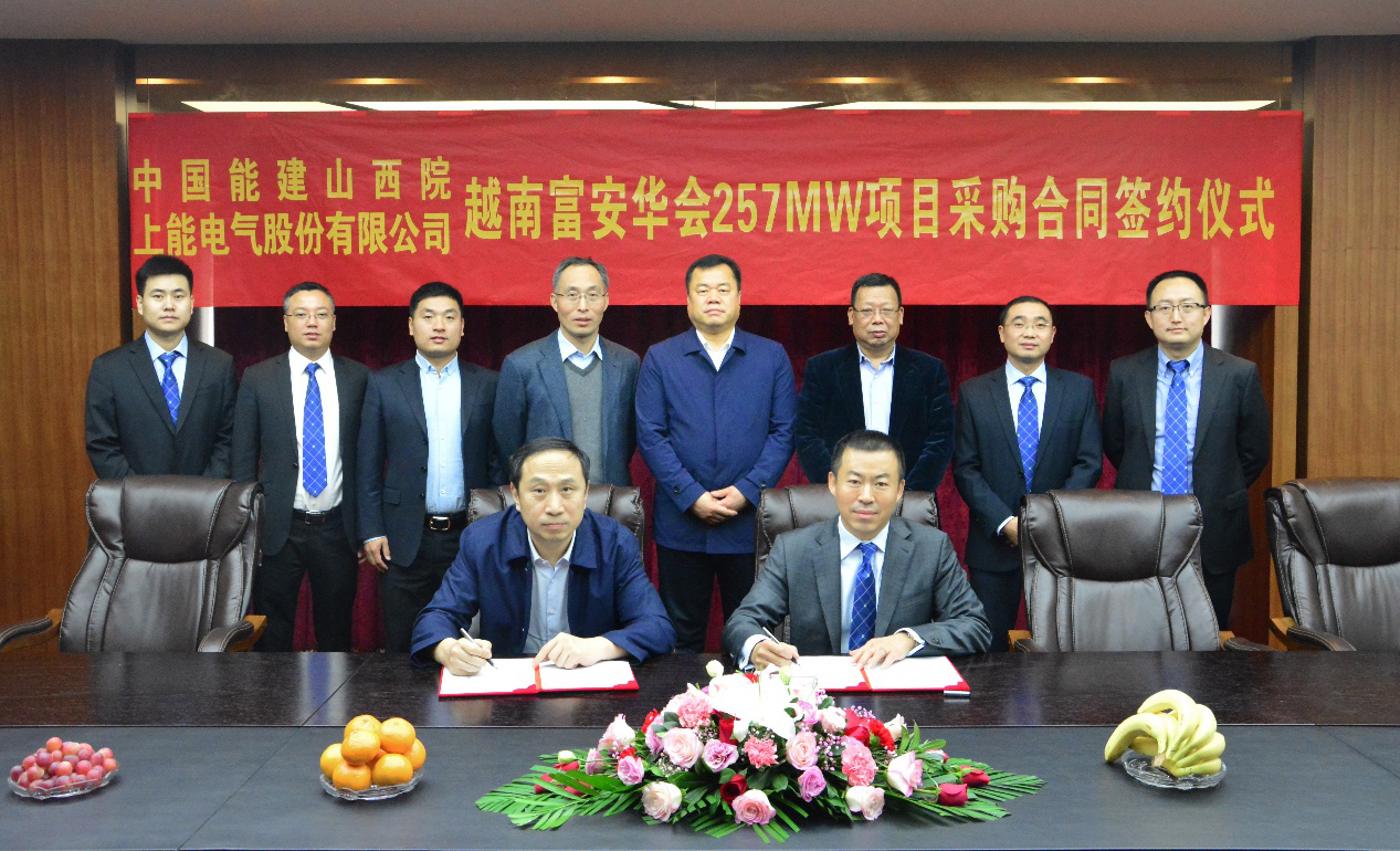 2018年11月28日,全球领先的光伏逆变器解决方案供应商上能电气股份有限公司与中国能源建设集团山西省电力勘测设计院有限公司就越南富安华会257MW地面光伏项目举行了签约仪式,上能电气为本项目提供全部逆变升压一体化装置,合同金额近8000万。