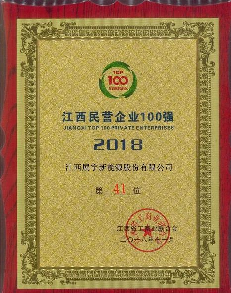 展宇新能再次入围江西民营企业百强榜单