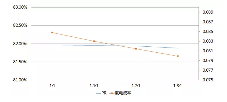 降低度电成本不止于提高系统发电量,还在于提高系统容配比,为什么印度的光伏系统成本相对比较便宜,一方面由于设备自身价格的原因,另一方面也在于容配比提升对光伏电站系统成本的影响。以下从两个维度阐述降低度电成本的效果: