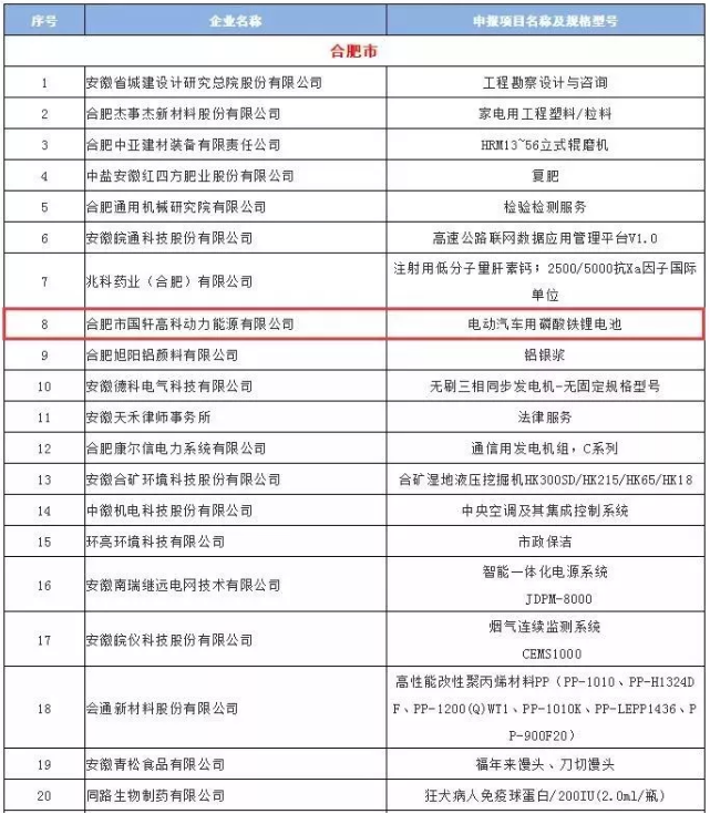 据悉,国轩高科于8月7日通过安徽名牌资格审核,11月5日在“安徽名牌”微信宣传平台进行项目初选名单公示。