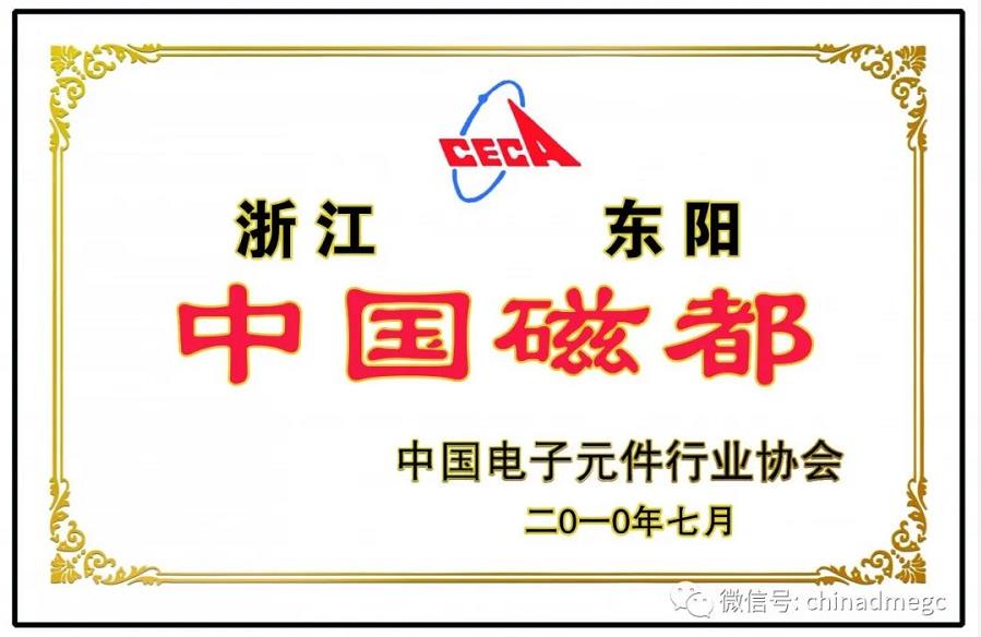 2011年1月14日,正因为有东磁的龙头带动作用,东阳市被中国电子元件行业协会正式授予“中国磁都”称号。