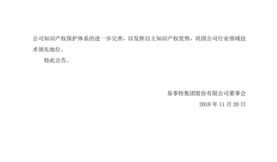 易事特表示,上述发明专利技术属于与 UPS 电源、微电网产品密切相关的核心技术,将对公司在不间断电源系统、分布式发电微电网产品领域的核心竞争力提升产生积极影响,有利于公司知识产权保护体系的进一步完善,以发挥自主知识产权优势,巩固公司行业领域技术领先地位。
