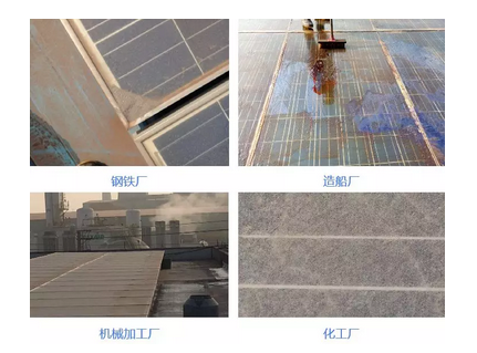不同种类的灰尘特性不同,因此需要采用不同的清洗方式,才能确保最佳的清洗效果。像金属颗粒、矿物粉尘、油性粉尘,常见于钢厂、化工厂,长期积累难于清理,并可形成锈蚀在组件玻璃表面,这样便需要使用合适的中性清洗液才能够清除干净,并且需要保持较高频率的清扫,才不会使灰尘再次附着在电站上。
