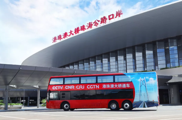 这一天,万众瞩目的港珠澳大桥正式开通。银隆新能源双层巴士获中央电视台青睐,承担直播重任,共同见证国家重大历史时刻。