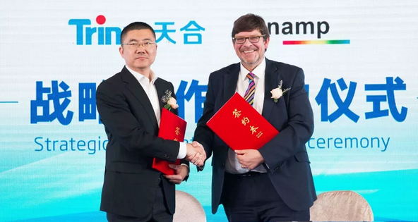 投产仪式上,天合光能旗下天合能源管理有限公司与中国节能协会热泵专委会和丹佛斯中国共同签署战略合作协议,三方共同致力于结合各方优势,探索光伏结合热泵的新热源形式、热能管网及末端的节能技术以及能源管理平台,提供集中式空气源热泵供暖系统的综合解决方案并积极促成方案全面应用,从而提升集中式空气源热泵供暖系统的能效及舒适度,最终推动空气源热泵行业的健康发展,助力国家清洁供暖战略的有效实施。