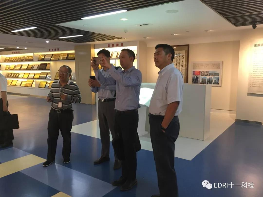 客人们首先参观11楼院史馆,全面深入地了解了十一科技的历史及发展,王书记对我院的历史表现出浓厚的兴趣,并对我院的发展给予充分肯定。