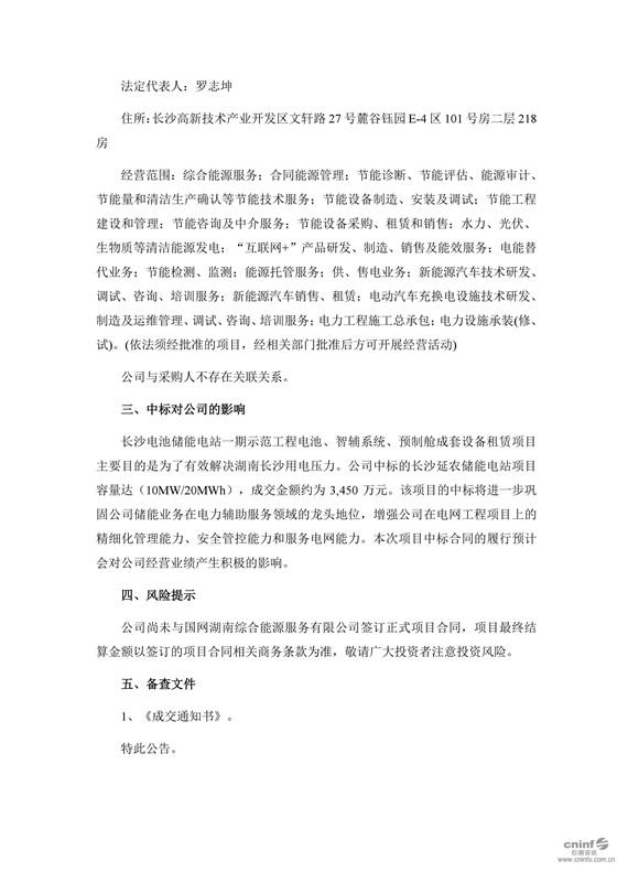 10月8日晚间,科陆电子发布公告称,公司近日收到国网湖南综合能源服务有限公司发来的《成交通知书》,确定公司为长沙电池储能站一期示范工程电池、智辅系统、预制舱成套设备租赁项目长沙延农储能电站项目标包的成交人,成交金额约3,450万元。