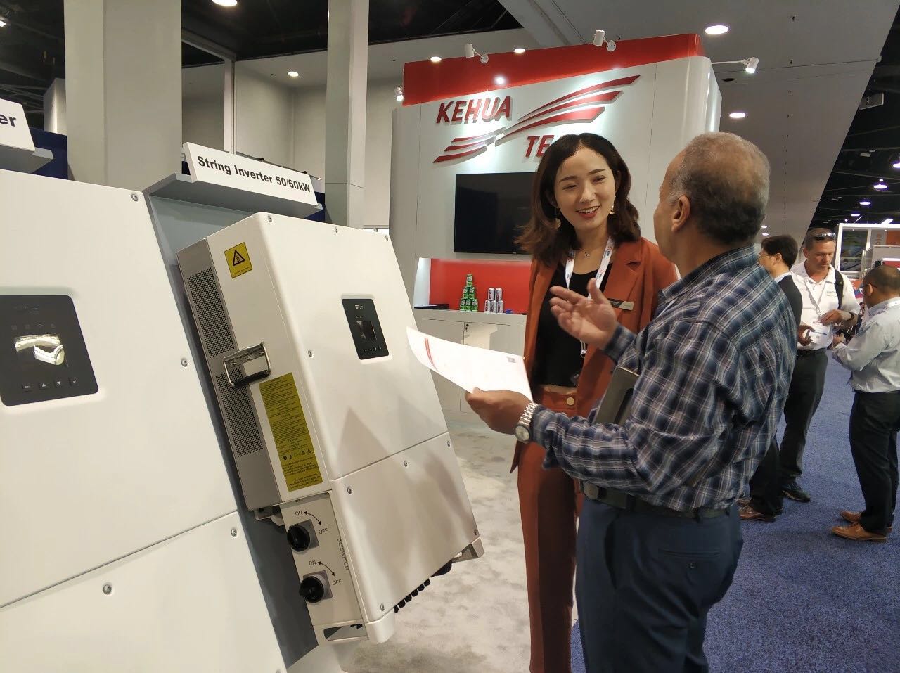 SPI现场,科华恒盛展位上咨询不断,专业技术人员与客户交流热烈。针对户用储能市场,科华恒盛推出户用储能逆变器SPH5kW,帮助北美客户实现能源独立。
