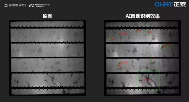 正泰新能源在2018年与阿里云合作,选择在电池片的EL检测环节优先引入AI智能检测,通过AI的深度学习与改进,目前该产线环节已经实现50%的人力替代。而且相比原来的人工肉眼检测,AI检测效率高、准确率高,AI检测速度是人工的2倍以上,并实现了全检测试。