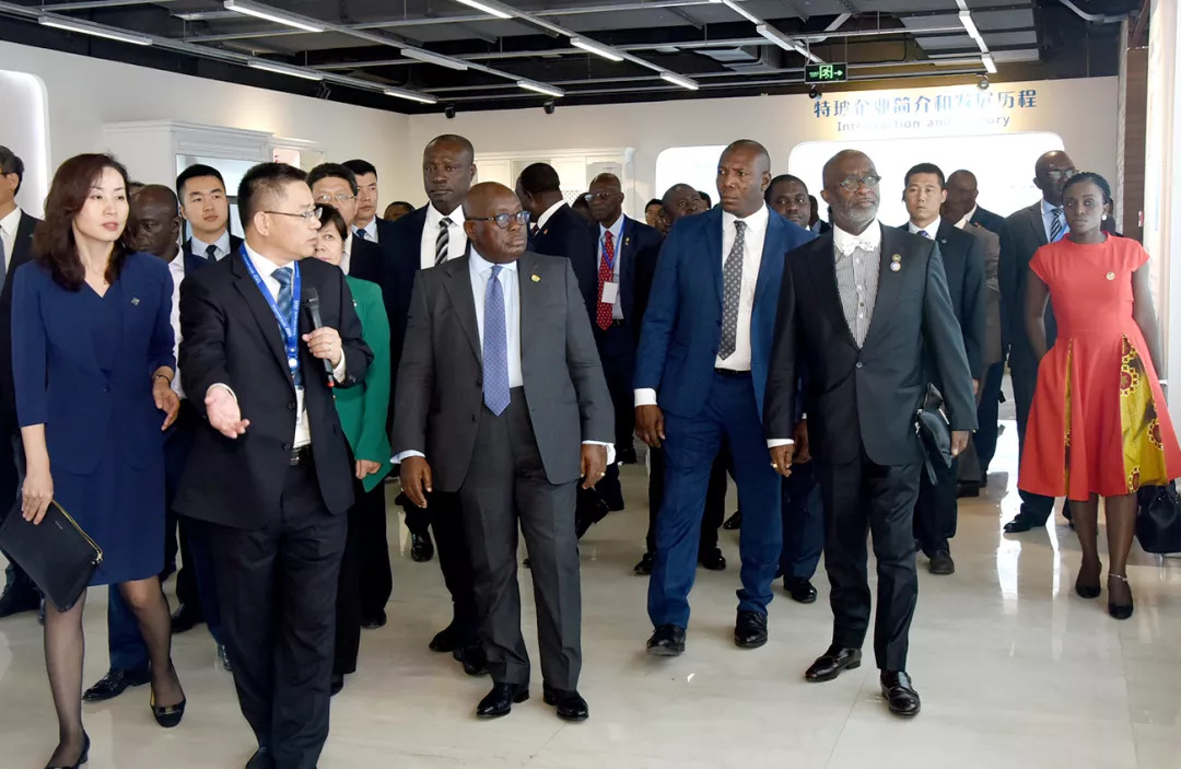9月5日,加纳总统纳纳•阿多•丹夸•阿库福—阿多一行40多人到访力诺集团,参观了力诺集团展览馆,了解了力诺集团发展史、产业结构及未来发展规划,尤其对力诺阳光板块各产业进行了细致的了解,总统先生对力诺电力工程扶贫示范项目及新能源智慧城市概念表示极大的兴趣并给予高度评价。