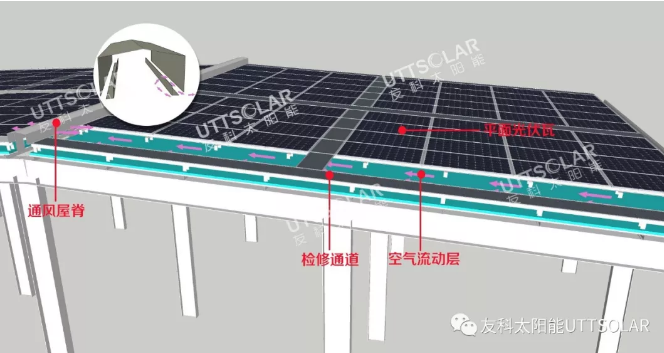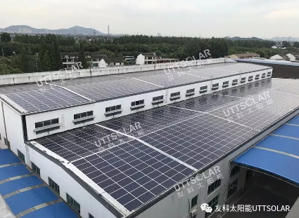 友科太阳能的光伏屋面系统,采用了光伏建筑一体化的应用形式,能够使光伏部分与建筑高度融合,在结构上、色彩上、自然上实现平衡感。