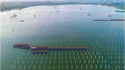 中国广核新能源控股有限公司泗洪光伏发电应用领跑基天岗湖渔光互补领跑者项目部始终牢记“一次把事情做好”的核心价值观;执行“安全第一 质量第一 追求卓越”的基本原则和“如履薄冰、如临深渊、如坐针毡”的安全意识;将“善用自然的能量”的品牌文化贯彻建设全过程。努力造福当地百姓,为当地的能源结构转型贡献力量,为当地经济的加速崛起谱写壮丽篇章。