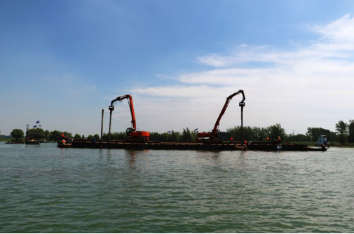 图:施工中的大型桩基平台,施工速度能达200根/天