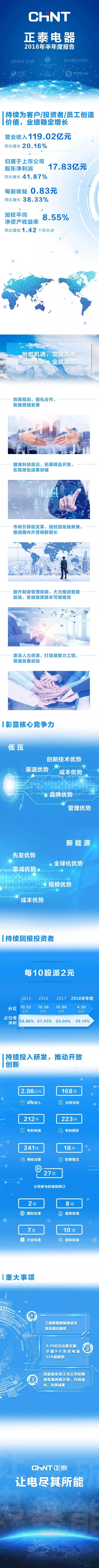 蒸蒸日上!正泰电器2018年半年报发布 多项利好齐发