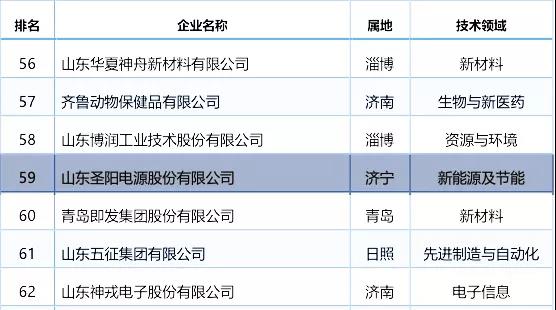 近日,山东首次发布高新技术企业创新能力百强名单,圣阳电源榜上有名。