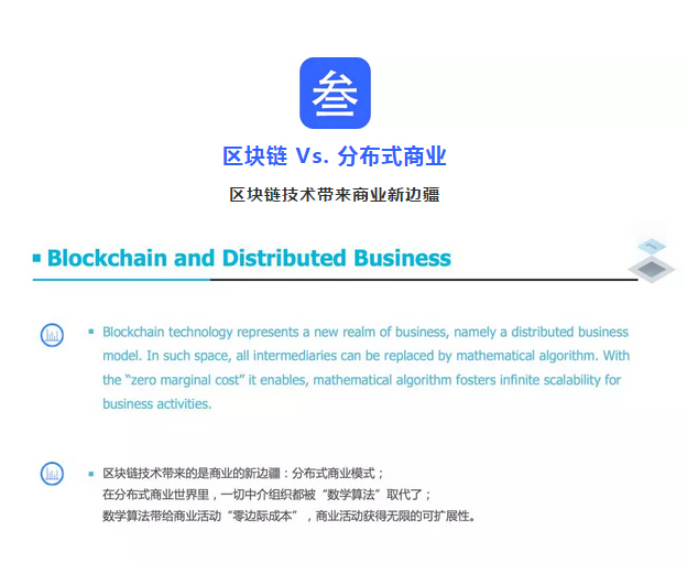 在分布式商业里,中介不是不在了,而是中介的形式发生了变化,所有的商业中介、所有的信任中介、所有的信用中介被数学算法所取代。