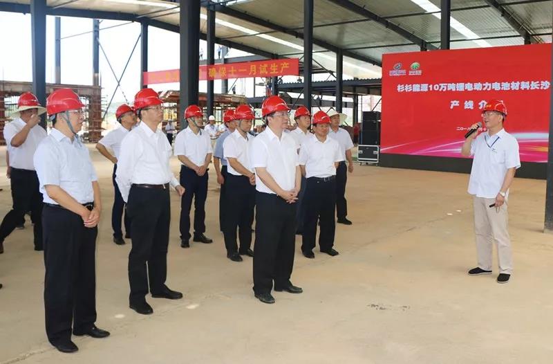 7月16日,湖南省委常委、长沙市委书记胡衡华等领导带领长沙市产业链观摩团来到杉杉能源10万吨锂电动力电池材料长沙基地现场考察。