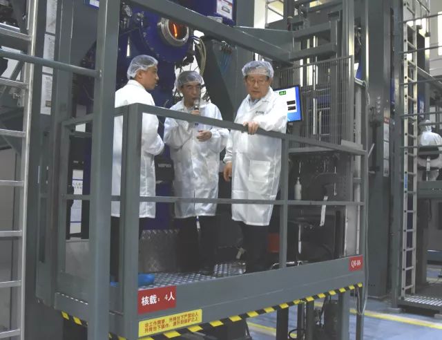 随后,万钢主席参观了中环股份区熔研发制造车间,观看了IGBT用8英寸区熔硅单晶扩肩生长过程,并进一步了解了中环股份在集成电路用半导体材料制造领域技术工艺、产业优势。
