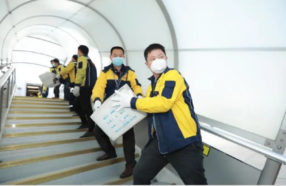 2月4日16:45,由北京出发的CA1373次航班降落长沙黄花机场。中国籍黄女士从南非经多次转机,带回来25个行李箱,“人肉”背回2.6万个医用N95口罩。