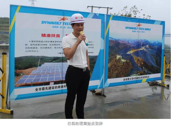 在仪式上,总裁助理黄振武代表猛狮科技董事长兼总裁陈乐伍先生发表重要讲话,他表示,湖北猛狮光电团队在总经理姜兴均的带领下,不畏艰难、屡创奇迹,历经千辛万苦、克服重重困难保障电站如期并网,充分展示了猛狮的社会责任担当。该电站是猛狮科技响应国家光伏扶贫政策的有力举措,更为当地扶贫产业的发展做了积极的贡献,意义非凡、影响深远。