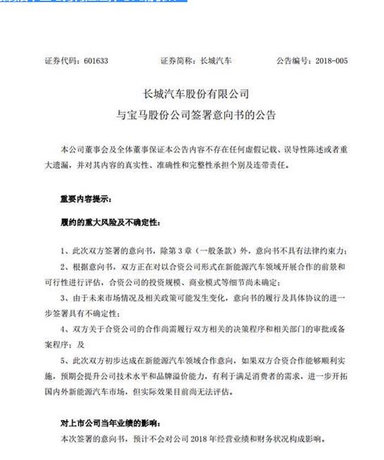 其实,早在今年2月底,长城和宝马就分别宣布双方签署合作意向书,初步达成以合资公司的形式在新能源和未来技术等方面进行合作,以实现MINI纯电动车型的中国本土化生产。