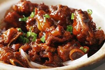 无锡酱排骨色泽酱红,肉质酥烂,骨香浓郁,汁浓味鲜,咸中带甜,充分体现了无锡菜肴的基本风味,和无锡清水油面筋、惠山泥阿福并列为无锡三大名产而驰名中外,兴于清光绪年间。无锡酱排骨的烹制十分讲究。一是选料精,需取三夹精的草排为原料。这种草排,一头猪身上只有七八斤,它的特点是肉质细嫩。二是作料要好,需要用黄豆酱油,绵白糖,老廒黄酒,还有葱、姜、茴香、丁香、肉桂等烹调。三是操作要严,一百斤生的肉骨头,要加酱油十二斤,白糖三斤,黄酒三斤,用文火烧两个小时。最后制得六十四斤左右的无锡排骨,并保持其特色。