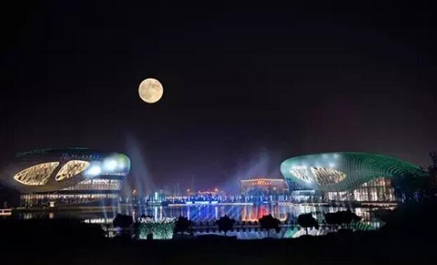 “河豚”距地面42米,相当于15层楼那么高,游客可以乘电梯直达它肚子里的观景平台。站在平台上,透过任何一个空隙,都可以窥见西沙岛周边的景色,还可以看到对岸的园博园。而到了晚上,随着外部LED灯光设备的开启,岛上的这只“河豚”还会变色。
