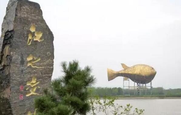 造型是一条金光灿灿,摇头摆尾的“河豚”(实为河鲀),黄铜披身,建成以后将成为扬中市的新地标,位于扬中园博园的西沙岛上。巨型“河豚”两只圆滚滚的眼睛望向北方,夕阳照射在鱼鳞状铜片上,通体闪闪发光,河豚肚子下方还有几个大字:“中国河豚岛·扬中”。