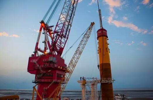 2016年10月, 海峡两岸第一个大陆外海上风电项目2台单桩基础,在19米水深海域、经历了3次台风,全球最严格海上施工标准NobleDenton Marine Services。