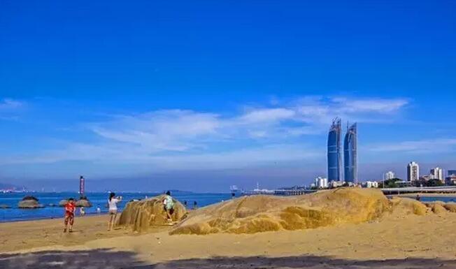 白城沙滩位于厦门大学南部白城脚下,为演武大桥与胡里山炮台之间的一片美丽的沙滩。不仅是厦大学子,更多的厦门市民和游客喜欢到此漫步、游戏、游泳和观赏夕阳,这里是天然的休闲公园。厦大白城还有许多有趣的景致,沙滩上点缀着一只只巨大的鼠标,半环型天桥犹如巨大的时钟,白城遗址上雕刻着各种抽象的方形图案……融合美丽景色与深厚的文化历史底蕴于一体。
