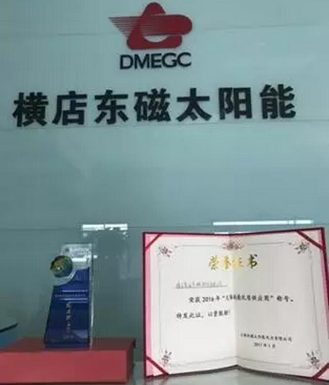 (2)2016年度无锡尚德供应商技术交流大会在尚德生态大楼举行,无锡尚德的近百名电池和组件端供应链的供应商代表出席本次交流会。横店东磁太阳能应邀参加交流会,并被授予“优质供应商”奖。