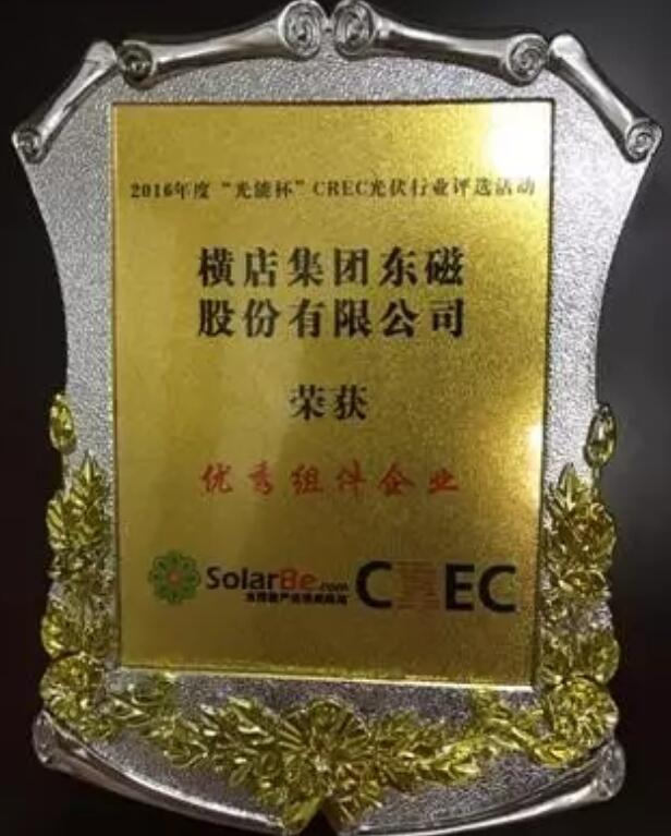 (1)11月2日,2016“光能杯”CREC年度光伏行业评选活动暨“协鑫之夜”颁奖典礼在无锡隆重举行,横店集团东磁股份有限公司荣获“优秀组件企业”称号。