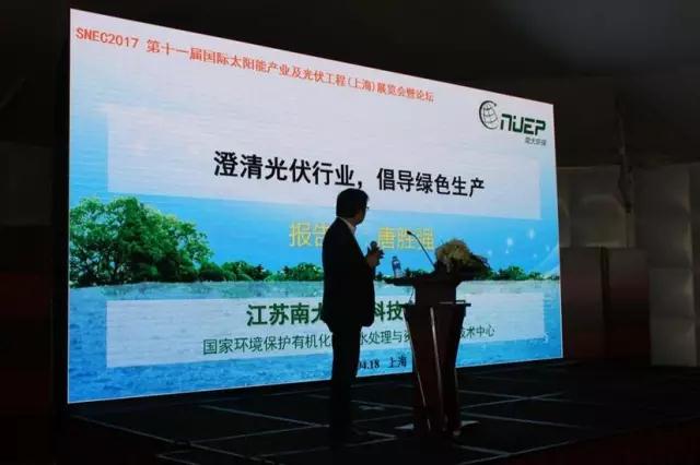 2017年4月19日在SNEC2017 第十一届国际太阳能产业及光伏工程(上海)展览会上南大环保唐胜强向光伏行业诸位老总展示了技术创新成果,强化了行业经验交流,促进了新能源行业的蓬勃发展。同时,也展示了南大环保的品牌特色、技术优势和示范工程,巩固已有合作关系,还发掘了大批潜在客户,为开拓市场奠定了基础。