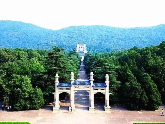 中山陵位于南京市玄武区紫金山南麓钟山风景区内,前临平川,背拥青嶂,东毗灵谷寺,西邻明孝陵,整个建筑群依山势而建,由南往北沿中轴线逐渐升高,主要建筑有博爱坊、墓道、陵门、石阶、碑亭、祭堂和墓室等,排列在一条中轴线上,体现了中国传统建筑的风格,从空中往下看,像一座平卧在绿绒毯上的“自由钟”。融汇中国古代与西方建筑之精华,庄严简朴,别创新格。中山陵各建筑在型体组合、色彩运用、材料表现和细部处理上均取得极好的效果,音乐台、光华亭、流徽榭、仰止亭、藏经楼、行健亭、永丰社、永慕庐、中山书院等建筑众星捧月般环绕在陵墓周围,构成中山陵景区的主要景观,色调和谐统一更增强了庄严的气氛,既有深刻的含意,又有宏伟的气势,且均为建筑名家之杰作,有着极高的艺术价值,被誉为“中国近代建筑史上第一陵”。