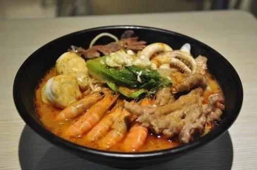 其妙处在汤头。主料之一的沙茶是选用上等的虾头,经拌盐腌制两个月以上,再磨细,将虾酱、蒜头酱按先后顺序加入沸油炸透,待冷却后加入五香粉、咖哩粉、辣椒粉、芝麻等制成。