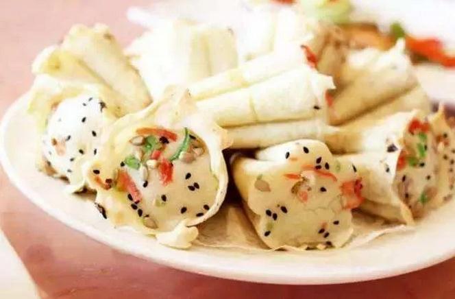 南京风味小吃。它选用上等面粉,将发酵粉和水拌成浆状,注入烤热的梅花模具中,放入豆沙、鲜肉、猪板油丁、玫瑰等各种馅心,再注上面浆,撒上白糖、红绿瓜丝,用灼热的铁板盖在糕模上烤熟即成。烤熟的梅花糕呈金黄色,形如梅花,松软可口,老少皆宜。