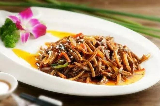 长兴县临太湖,毗天目,全具盛产鳝鱼,品质兼优,且制作鳝鱼的技艺 十分高超。相传,乾隆皇帝巡视江南之际,杭州官府通报各地名厨高手烹菜 献艺。据称“长兴爆鳝丝”夺得魁首,被乾隆赞誉为“江南难得一味”。此菜口感香脆,解乏健脑,是缓解疲劳的上品。