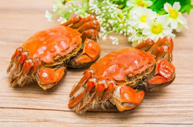 太湖蟹,生长于太湖水域,亦称螃蟹,其背壳坚隆凹纹似虎色青黑,腹青白色,腹下有脐,雄尖雌团,内有硬毛。蟹个大体重,蟹黄肥厚,肉质细嫩,腴美异常,辨别太湖蟹可从“青壳、白肚、金爪、黄毛、体壮”这五个特征入手。
