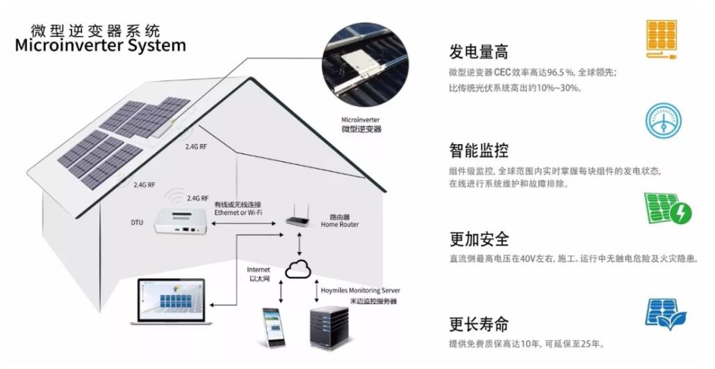 第四,微型逆变器系统可以实时监测每块组件及逆变器输出的电能及功率,方便系统运维管理,降低后期维护成本。
