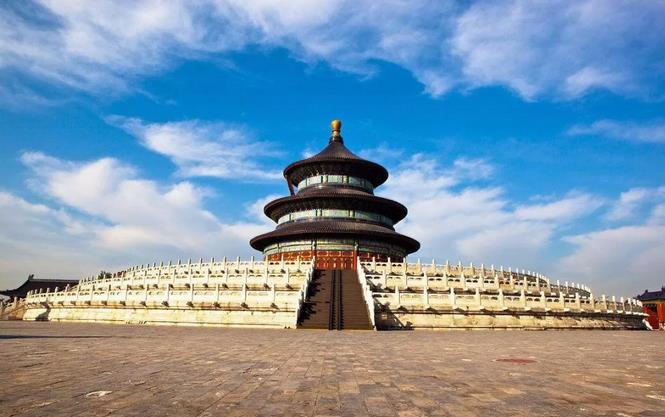 天坛,在北京市南部,东城区永定门内大街东侧。占地约273万平方米。天坛始建于明永乐十八年(1420年),清乾隆、光绪时曾重修改建。为明、清两代帝王祭祀皇天、祈五谷丰登之场所。天坛是圜丘、祈谷两坛的总称,有坛墙两重,形成内外坛,坛墙南方北圆,象征天圆地方。主要建筑在内坛,圜丘坛在南、祈谷坛在北,二坛同在一条南北轴线上,中间有墙相隔。圜丘坛内主要建筑有圜丘坛、皇穹宇等等,祈谷坛内主要建筑有祈年殿、皇乾殿、祈年门等。