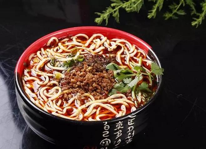 担担面是四川成都和自贡著名的地方传统面食小吃,据说源于挑夫们在街头挑着担担卖面,因而得名。担担面是将面粉擀制成面条,煮熟,舀上炒制的肉末而成。成菜面条细薄,卤汁酥香,咸鲜微辣,香气扑鼻,十分入味。