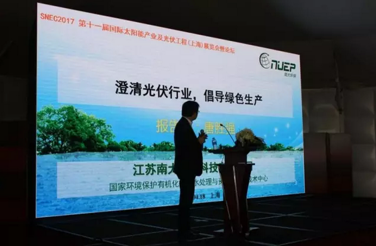 2017年4月19日在SNEC2017 第十一届国际太阳能产业及光伏工程(上海)展览会上南大环保向光伏行业诸位老总展示了技术创新成果,强化了行业经验交流,促进了新能源行业的蓬勃发展。同时,也展示了南大环保的品牌特色、技术优势和示范工程,巩固已有合作关系,还发掘了大批潜在客户,为开拓市场奠定了基础。