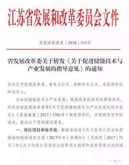 重磅利好!江苏发改委发文力促储能技术和产业发展